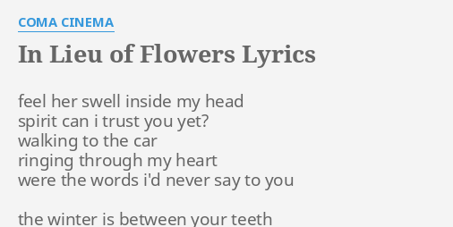 In Lieu Of Flowers 2013 Directed By William Savage Reviews Film Cast Letterboxd from a.ltrbxd.com Maybe you would like to learn more about one of these? Check spelling or type a new query. How to say in lieu of flowers. We did not find results for: